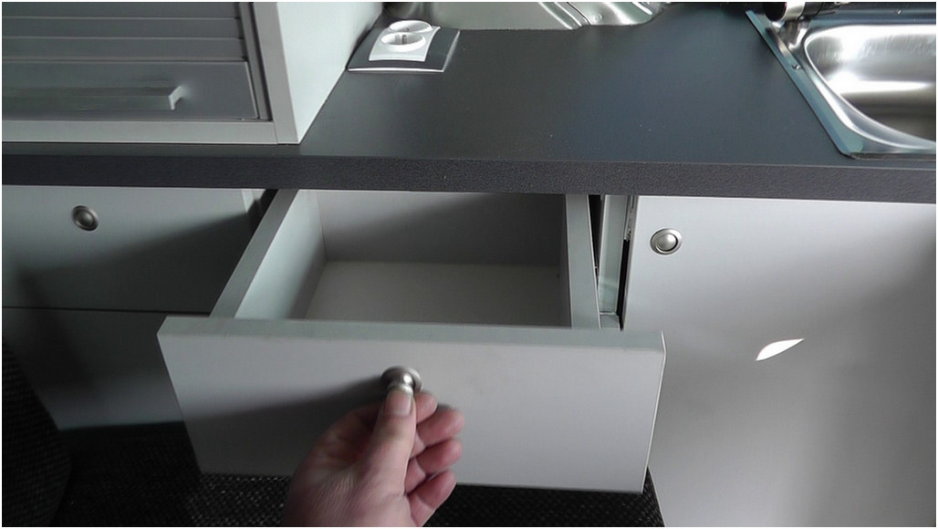 ◦ dwudrzwiową szafkę na odzież, podłużną szafkę uniwersalną oraz szafkę na maszty, śledzie,stolik, foteliki, parawany itp. Rodzaj płyt meblarskich i kolor do wyboru wg. wzornika podczas zamawiania auta. - Opuszczany stół a także blaty wykonane są z wysokiej jakości płyt grubo laminowanych w technologii HPL. Wszystkie krawędzie są łagodnymi, bezpiecznymi łukami.