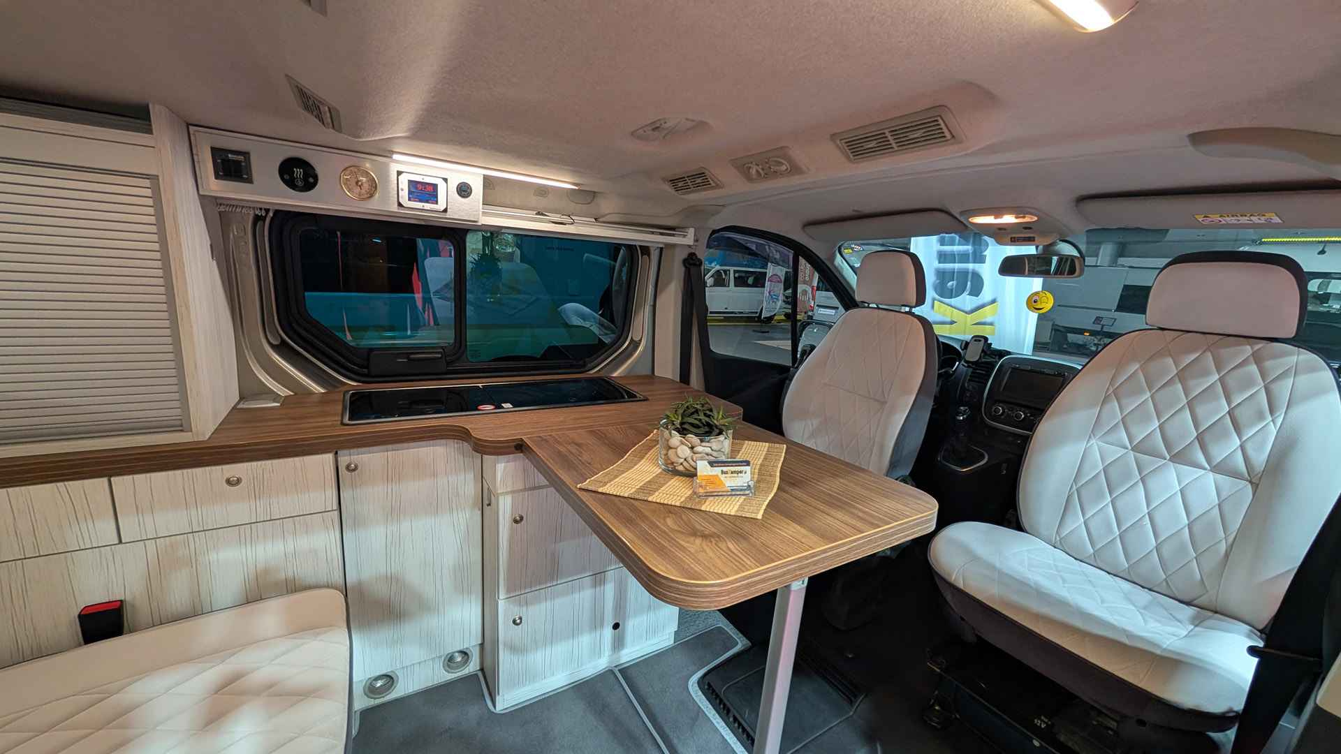 - Obrotowe, wygodne fotele z podłokietnikami, które na czas kamperowania obraca się do tyłu. W ten sposób powstaje wygodne miejsce do przebywania wokół stołu dla co najmniej 4 osób.